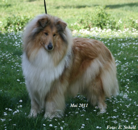 In unserem Zwinger fiel am 23. 08. 2008 der letzte Wurf unserer Golden Queen vom Rhododendronwäldchen nach dem Dt. JgCh Glen Morristone´s Hope Sweet Love. Im Jahr 2007 hatten wir die Verpaarung schon einmal gemacht und hatten 2 wunderschöne Rüden, Glenn und Gigolo. Golden Glenn vom Rhododendronwäldchen besuchte 4 Ausstellungen und war Jugendchampion. Wir hatten eine Anfrage nach einer Hündin für einen Züchter in Tschechien und gaben ihm freie Auswahl bei der Welpenwahl. Im Wurf von Queen waren 2 Hündinnen Hanna und Happy. Da der tschechische Züchter sich für Hanna entschied, blieb Happy bei uns. In den Jahren 2010 und 2013 belegten wir Happy mit unserem ungarischen Importrüden Double Scotch Gold Candy Asley. Happy brachte 2010 6 Welpen und 2013 7 Welpen, die sie hervorragend aufzog (Bilder: siehe L-Wurf und Q-Wurf). Happy ist eine sehr liebe, verschmuste und anhängliche Hündin.
